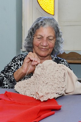 Joana Rosa Jardim, 83 anos, participa do Vivendo a Terceira Idade há menos de dois anos por indicação de uma amiga. “Gosto muito daqui. As meninas são tudo gente boa. Nós ficamos aqui à tarde conversando e nem vemos a hora passar. Aprendi a fazer um bocado de coisa aqui: pintar, fazer ‘casa de abelha’ e quero aprender mais coisa”, falou com simpatia a moradora do Petrópolis que na tarde dessa segunda-feira participava da oficina de artesanato.