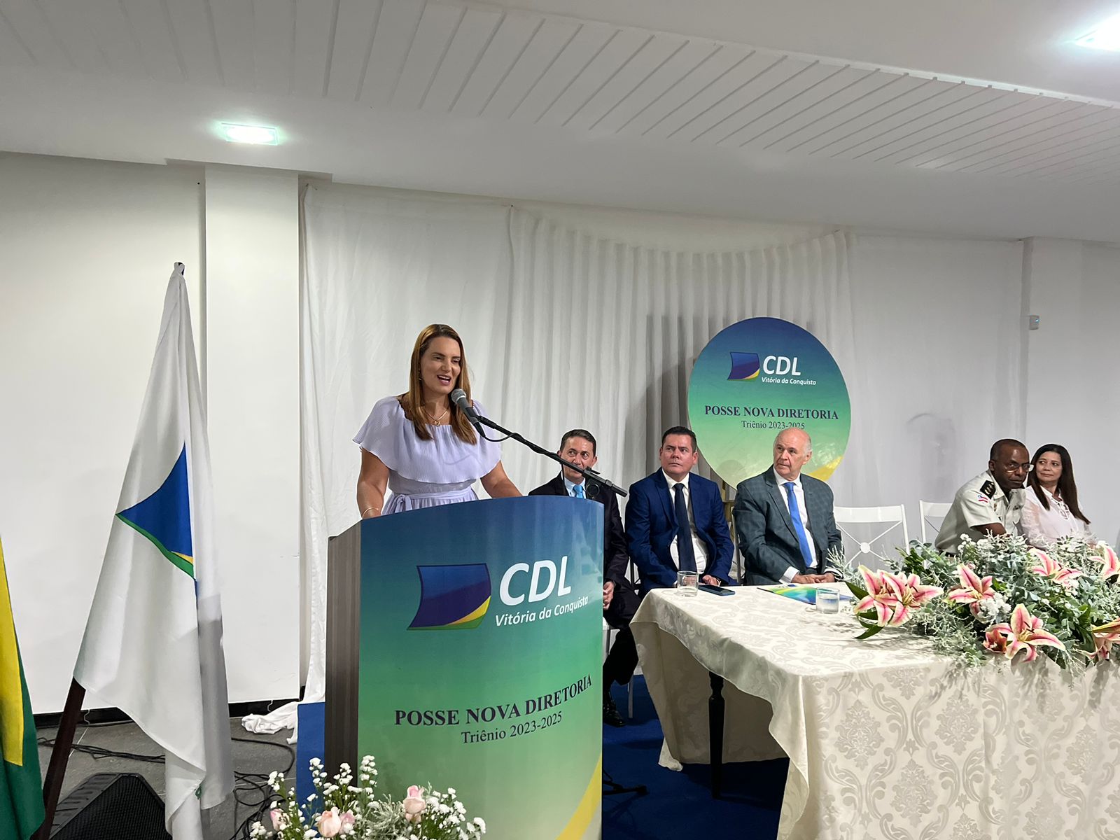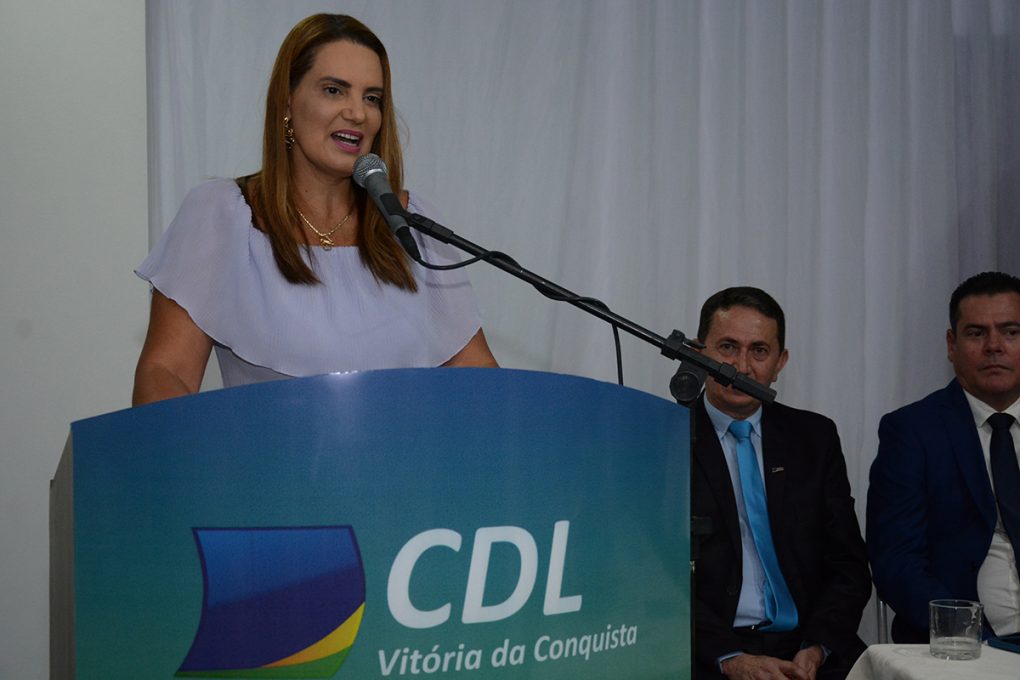 A prefeita Sheila Lemos reafirmou o compromisso do Governo Municipal de parceria com as entidades empresariais conquistenses, visando o desenvolvimento do município. Ela participou da posse da nova diretoria da Câmara de Dirigentes Lojistas (CDL) de Vitória da Conquista, na noite de ontem (31), no salão de eventos da Loja Cavaleiros do Oriente, quando relembrou o período em que esteve à frente da associação lojista e disse conhecer os desafios do setor.