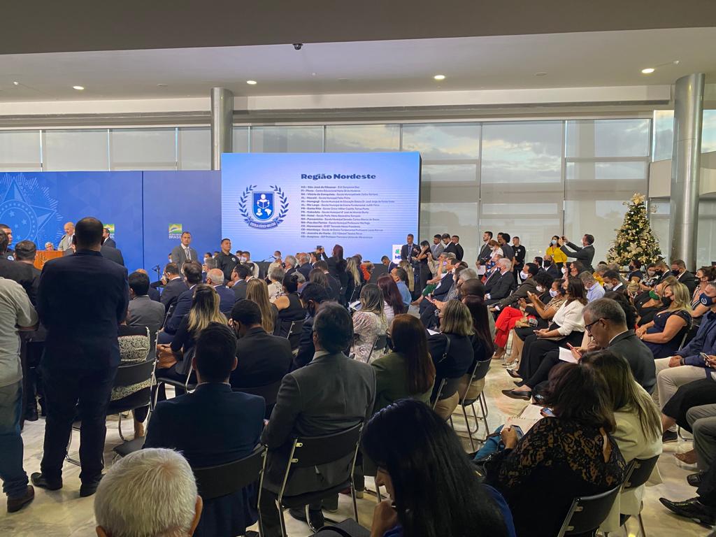 O secretário municipal de Educação, Edgard Larry, participou na tarde de ontem (24) da solenidade que oficializou a inserção da Escola Carlos Santana, da Rede Municipal de Ensino de Vitória da Conquista, ao Programa Nacional das Escolas Cívico-Militares (Pecim). O evento ocorreu no salão nobre do Palácio do Planalto, com a presença do presidente Jair Bolsonaro e do ministro da Educação Milton Ribeiro.