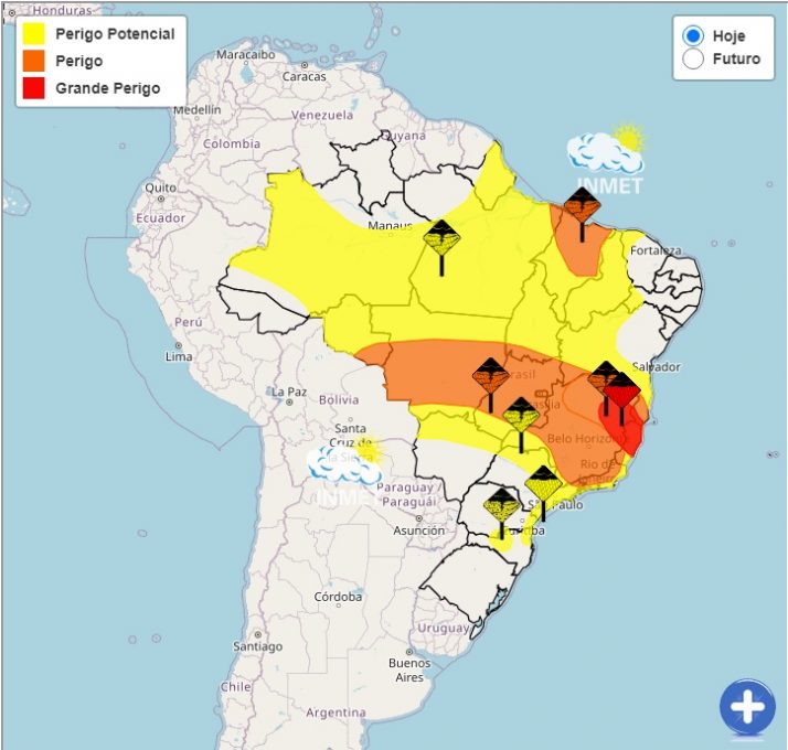 Conforme o aviso do Inmet, o alerta tem grau de severidade “perigo potencial” e é válido até esta quinta-feira (9), às 10h. A previsão é de chuva entre 20 e 30 mm/h ou até 50 mm/dia, ventos intensos (40-60 km/h), com baixo risco de corte de energia elétrica, queda de galhos de árvores, de alagamentos e descargas elétricas.