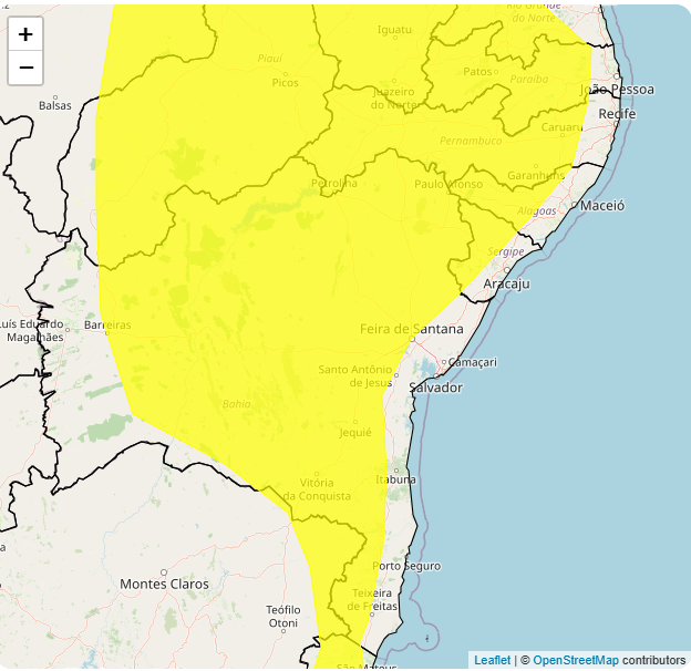 O Instituto Nacional de Meteorologia (Inmet) prorrogou, até as 10h de amanhã (27), o alerta amarelo que aponta perigo potencial para risco de vendaval em Vitória da Conquista.