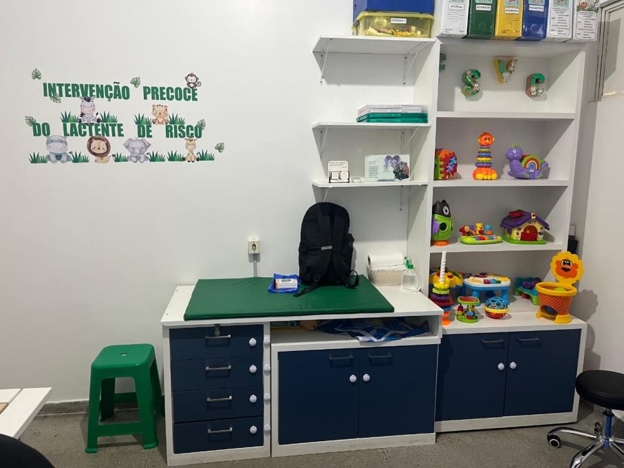 O serviço de Intervenção Precoce do Lactente de Risco começou em uma sala pequena, no início de 2022. Em agosto deste ano, ganhou um espaço maior e mais estruturado, oferecendo liberdade para os bebês, maior conforto e melhores condições de trabalho para a equipe.