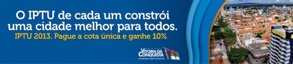 Atenção conquistenses! O prazo para o pagamento do Imposto sobre a Propriedade Predial e Territorial Urbana (IPTU) 2013 com cota única vai até o dia 30 de abril.