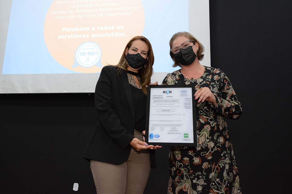 A Prefeitura de Vitória da Conquista é a única no Brasil a ter a certificação internacional ISO 9001 nesse escopo administrativo.