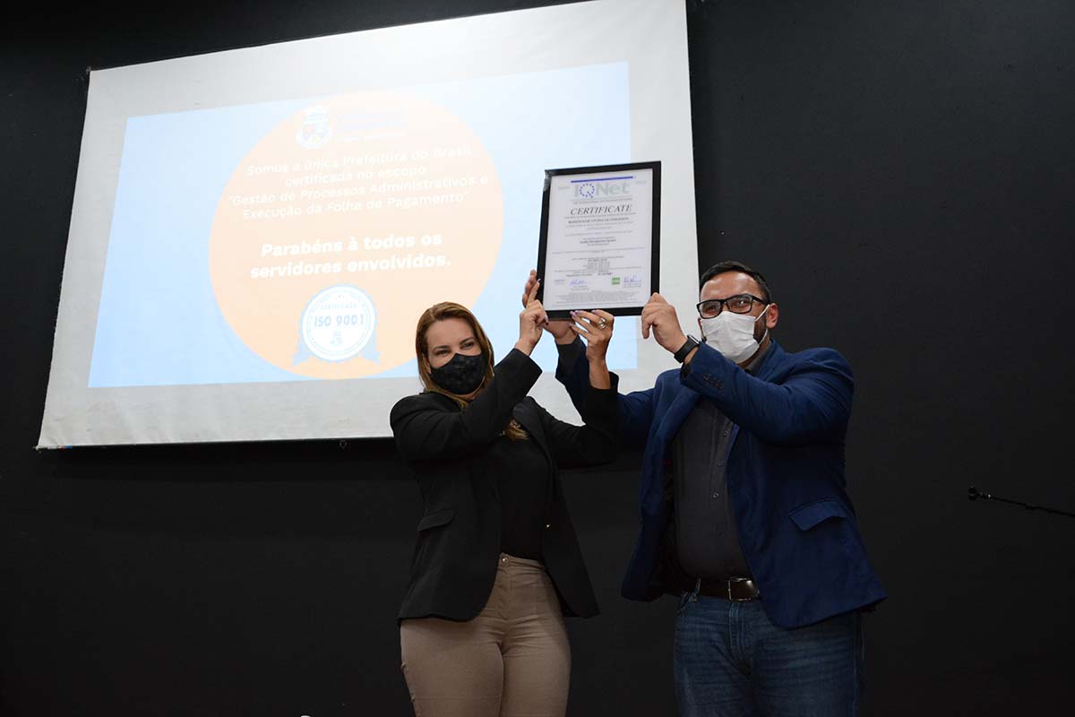 A manutenção da ISO 9001 foi o motivo de uma celebração ocorrida na tarde desta quarta-feira (26), no auditório do Cemae, com a presença da prefeita Sheila Lemos e da maioria do primeiro escalão do Governo Municipal. Na oportunidade, os servidores que atuaram na renovação da certificação tiveram o seu trabalho reconhecido com diplomas e agradecimentos do Governo Municipal.