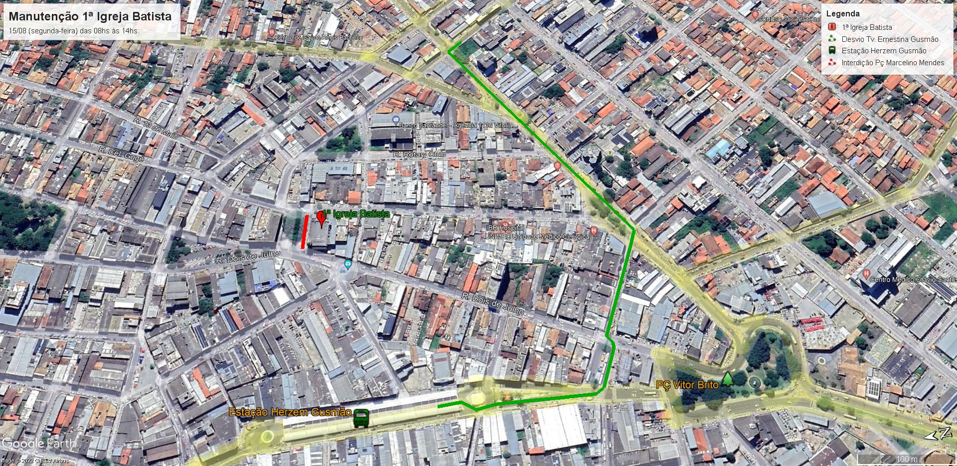 Nesta segunda-feira (15), das 8h às 14h, a Secretaria Municipal de Mobilidade Urbana (Semob) fará uma adequação no itinerário das linhas de ônibus coletivos que operam nas intermediações da Primeira Igreja Batista Bíblica, em decorrência de serviço de manutenção na parte elétrica do templo.