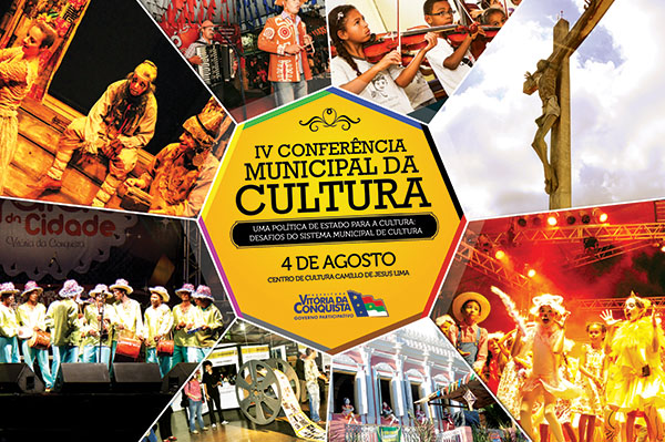 A IV Conferência Municipal de Cultura de Vitória da Conquista, promovida pela Secretaria Municipal de Cultura, será realizada no dia 4 de agosto, a partir das 8h, no Centro de Cultura Camillo de Jesus Lima. O tema do encontro deste ano é “uma política de estado para cultura: desafios do sistema municipal de cultura”.