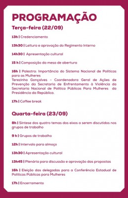 Com o tema “Mais Direitos, Participação e Poder para as Mulheres”, a iniciativa tem como objetivo traçar estratégias para que as políticas públicas de igualdade para as mulheres sejam efetivas. A conferência é uma oportunidade para as mulheres discutirem suas necessidades e apresentarem propostas visando a garantia de direitos.