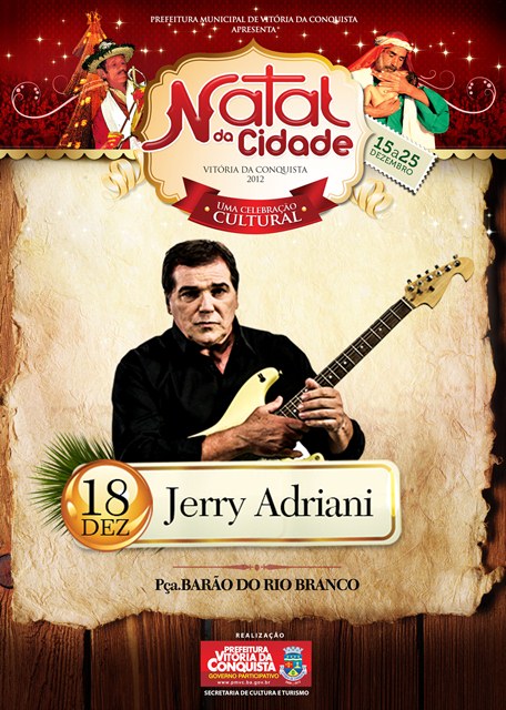 A quarta noite do Natal da Cidade de Vitória da Conquista vai fazer o público reviver momentos inesquecíveis da Jovem Guarda. Nesta terça-feira, 18, o cantor Jerry Adriani será o grande convidado da noite. Ídolo de várias gerações, o cantor possui mais de vinte álbuns gravados e já fez inúmeras turnês nacionais e internacionais ao longo da carreira.