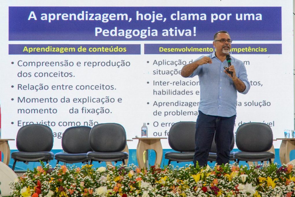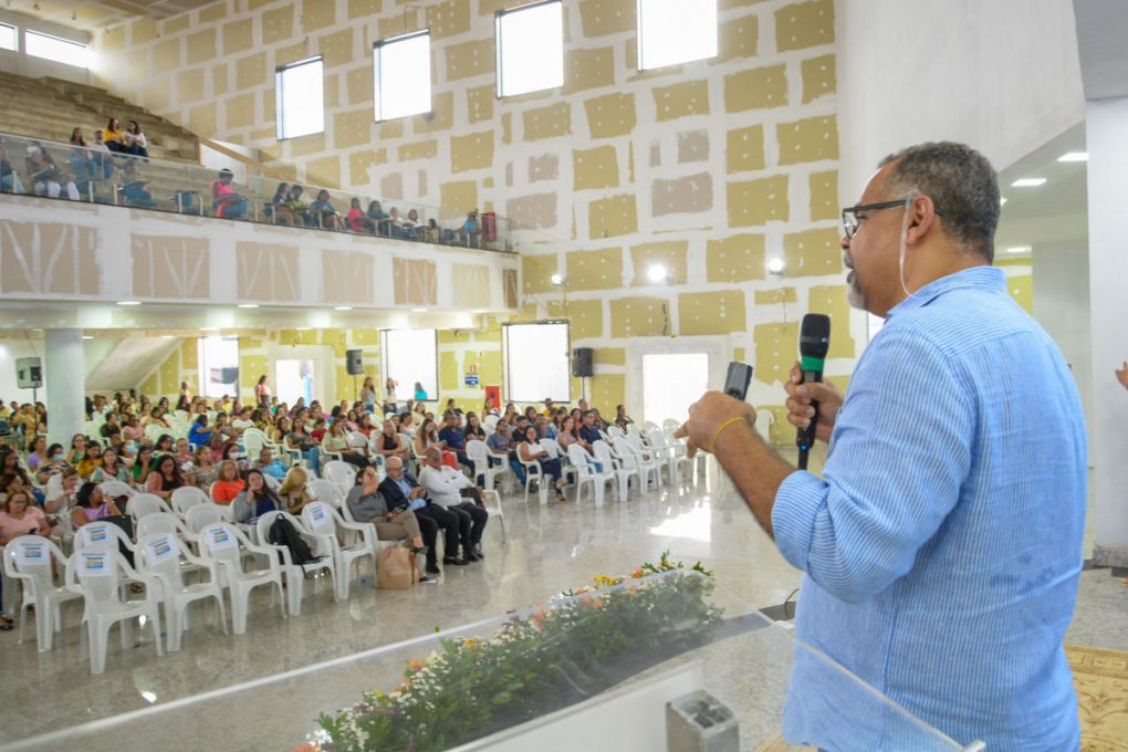 Representando a prefeita Sheila Lemos, que não pôde participar da abertura do evento, o secretário municipal de Educação, Edgard Larry, abriu os trabalhos agradecendo a gestora pela confiança depositada nele e na equipe. “Nosso slogan de governo tem tudo a ver com a escola. O que é a escola senão a pessoa cuidando de pessoas? O professor escolheu essa carreira porque decidiu cuidar do ensino de pessoas”, pontuou.