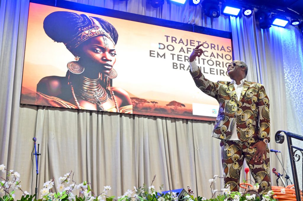A palavra que resumiu a palestra “Trajetórias do Africano em Território Brasileiro”, segundo o próprio historiador é “sankofa” – símbolo africano que expõe a necessidade de falar do passado para consolidar o presente e prospectar o futuro. “O negro tanto no período da escravidão no Brasil quanto no continente africano foi muito importante com suas contribuições. O negro veio escravizado e a nossa proposta com nossa formação e nosso material didático é mostrar a contribuição do negro na sociedade brasileira e na sociedade mundial”, disse Natanael, citando a matemática, música, agricultura, tecelagem e mineração como exemplos.