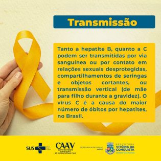 As transmissões mais comuns são das hepatites B e C, que podem ocorrer por via sanguínea, relações sexuais desprotegidas, compartilhamentos de seringas e objetos cortantes, transmissão vertical. O vírus C é a causa do maior número de óbitos por hepatites, no Brasil.