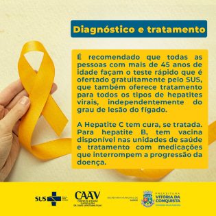 A Secretaria Municipal de Saúde (SMS), por meio do Centro de Atenção e Apoio à Vida (CAAV), intensificou o trabalho de prevenção, controle e tratamento das hepatites virais durante o Julho Amarelo, mês dedicado ao combate dessa doença que se caracteriza pela inflamação do fígado.