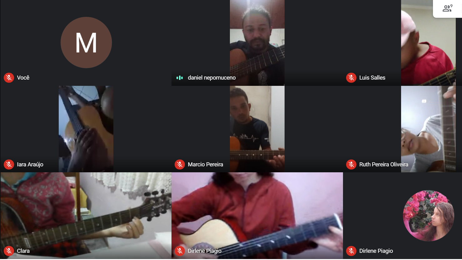 Exemplo dessa adaptação é o curso de “Violão Online”, que começou no último mês de fevereiro e atende 40 jovens com pouco ou nenhum conhecimento do instrumento. Segundo o idealizador do curso, Daniel Nepomuceno, o trabalho foi desafiador. “No início foi difícil, pois eu necessito do calor dos alunos para interagir, mas aí criamos uma dinâmica e está funcionando. Esperamos fomentar a cultura através da educação e da música”, disse.