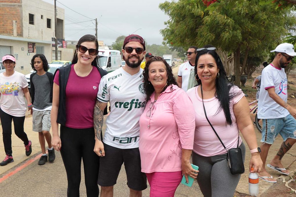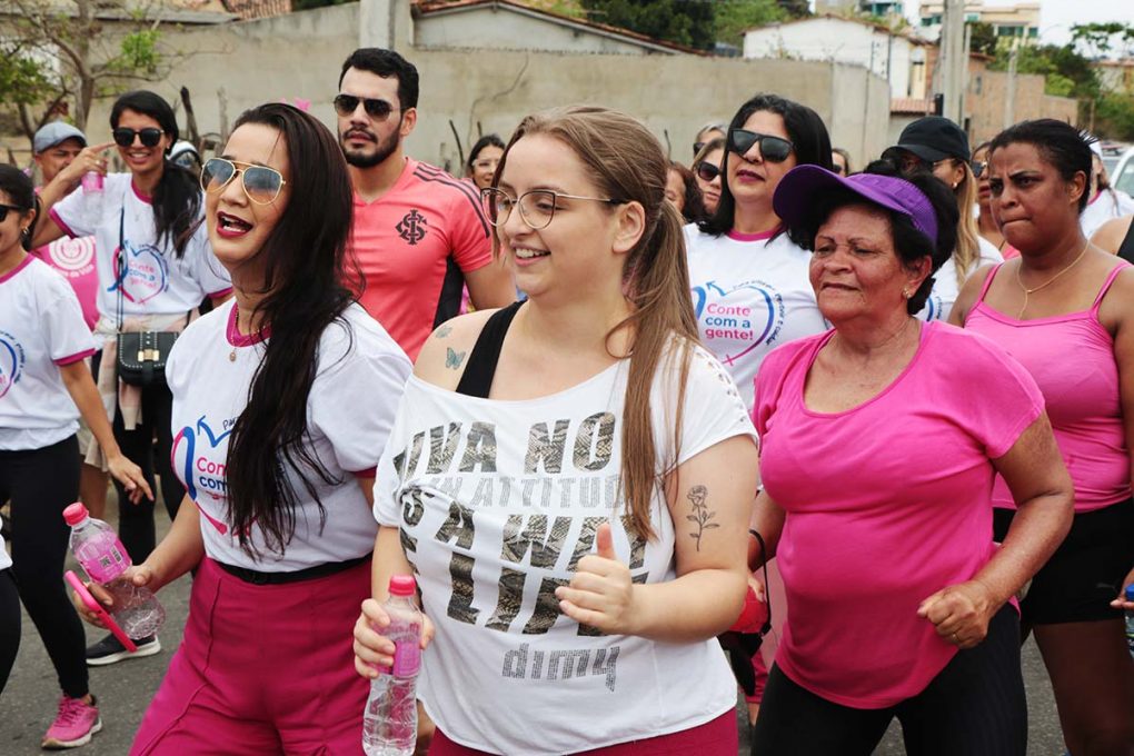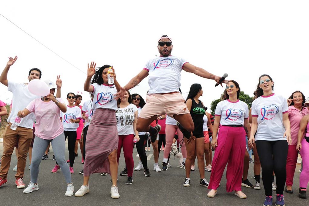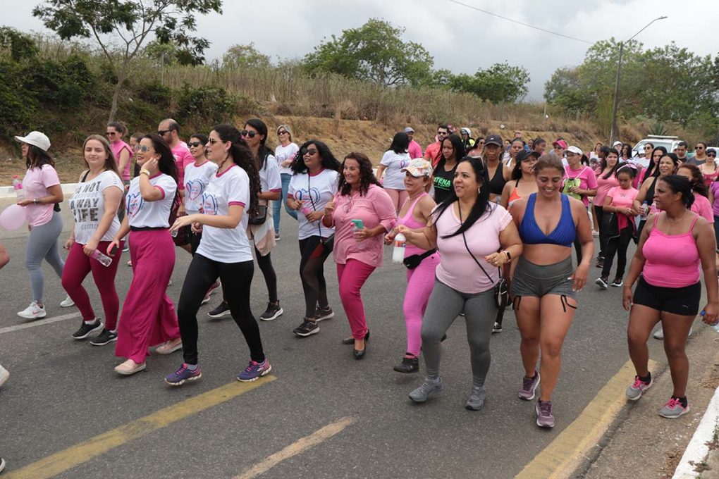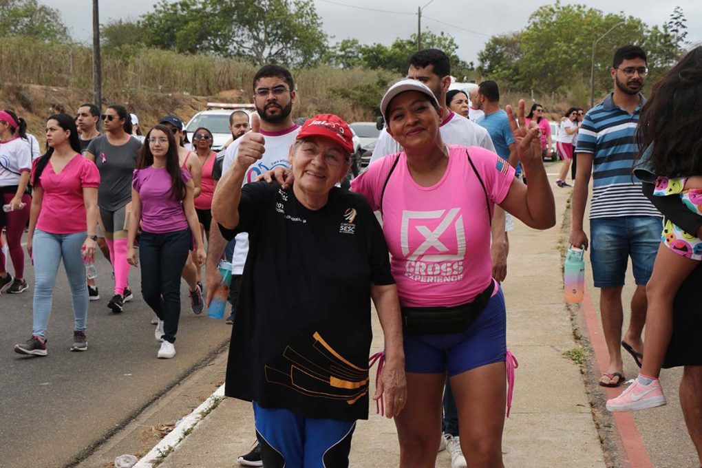 Além da caminhada, foram oferecidos serviços de saúde, como orientações sobre o autoexame e a importância do exame clínico das mamas, distribuição de materiais informativos e agendamento de mamografias.