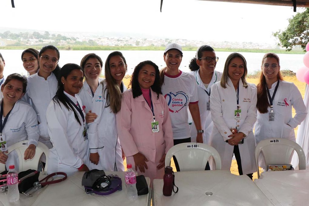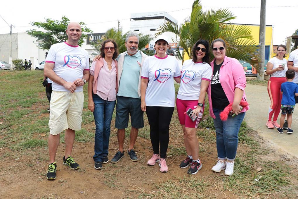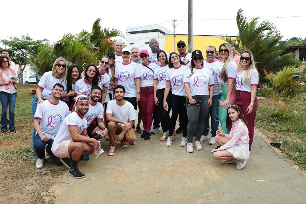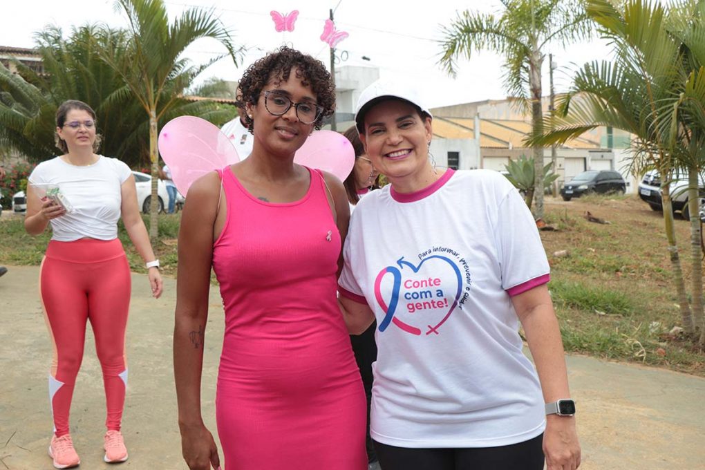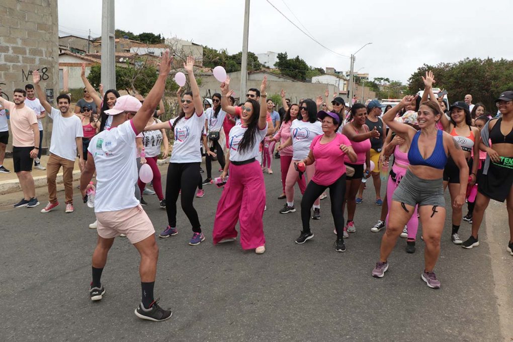 Além da caminhada, foram oferecidos serviços de saúde, como orientações sobre o autoexame e a importância do exame clínico das mamas, distribuição de materiais informativos e agendamento de mamografias.