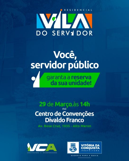 Acontece neste sábado (29), o lançamento do Residencial Vila do Servidor, às 14h, no Centro de Convenções Divaldo Franco, localizado na Avenida Rosa Cruz, 1035, Alto Maron.