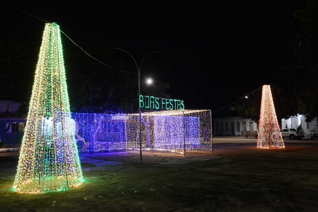 A decoração é formada por árvores feitas de metalon, cortinas de LED e aproximadamente 200 mil microlâmpadas coloridas. A montagem só pôde ser concluída agora, devido às condições climáticas das últimas semanas. “O momento chuvoso dificultou e atrasou o nosso trabalho, mas conseguimos concluir antes das festas”, explica o coordenador municipal de Cultura, Alecxandre Magno.