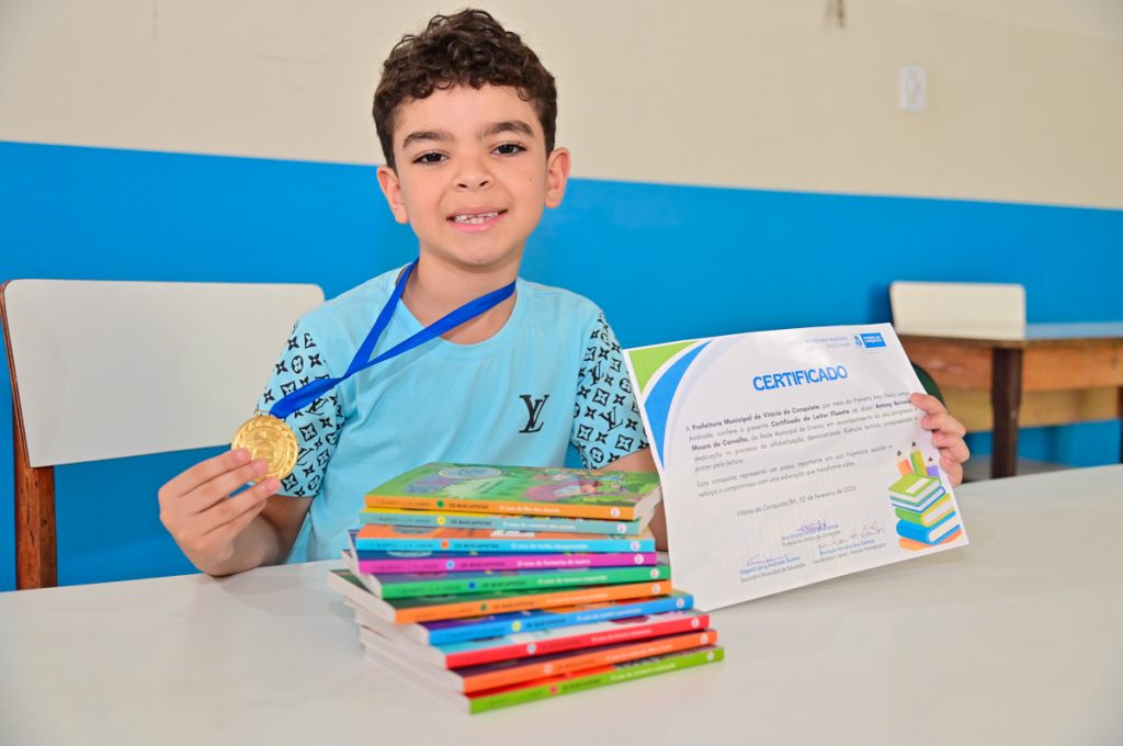 Na ocasião, a gestora homenageou o aluno Antony Bernardo Carvalho, de 7 anos, com um certificado de leitura, medalha e kit de livros. Antony representou os estudantes da rede de ensino na abertura da Jornada Pedagógica 2026, com um discurso que destacou como a educação transforma vidas, emocionando a quem compareceu. Marisonia Freire, professora de Antony homenageada no discurso, também recebeu uma premiação das mãos da prefeita.