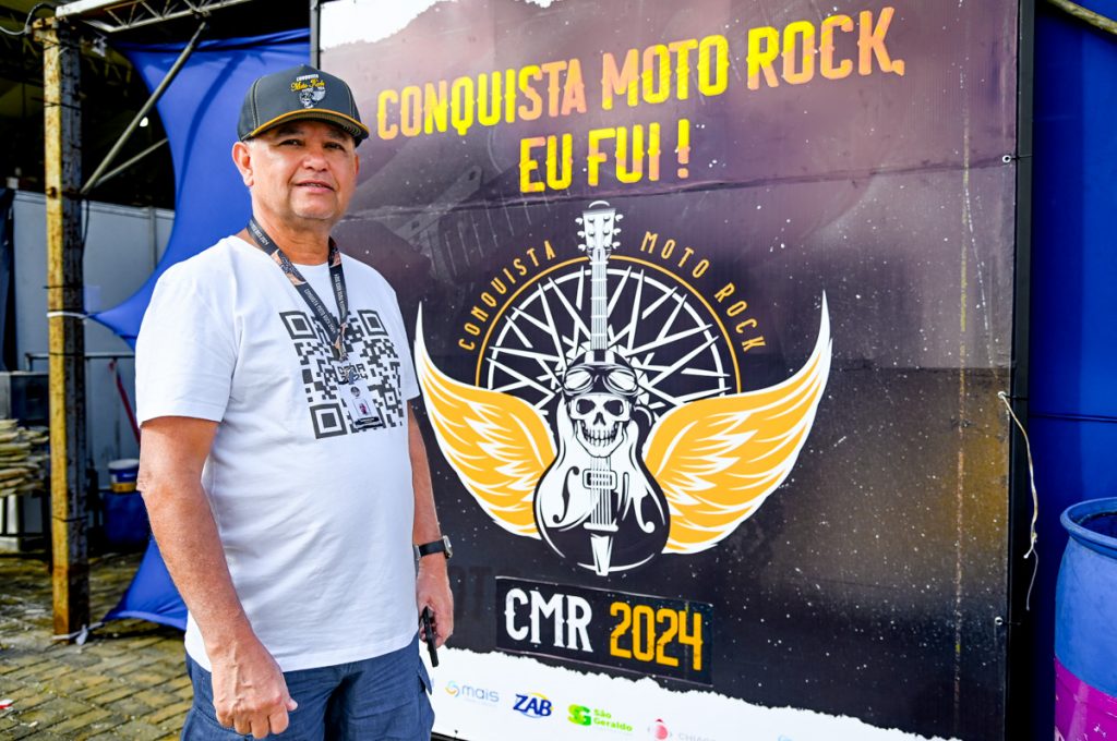 Apaixonado por motos e pelas estradas há mais de 30 anos, Jesulino Ferreira, integrante do motoclube Bodes do Asfalto, veio da cidade de Maiquinique (BA), com sua esposa, para participar pela quinta vez do Conquista Moto Rock. “É sensacional, como todos os anos, muito bom, muito bem feito e muito bem organizado. Um evento com uma estrutura dessa e grátis para o pessoal, né? Ninguém paga nada e é sempre aquele evento amistoso, porque, onde tem moto clube, onde tem motociclista, tem paz, tem amor, tem tranquilidade, tem família”, contou Jesulino.