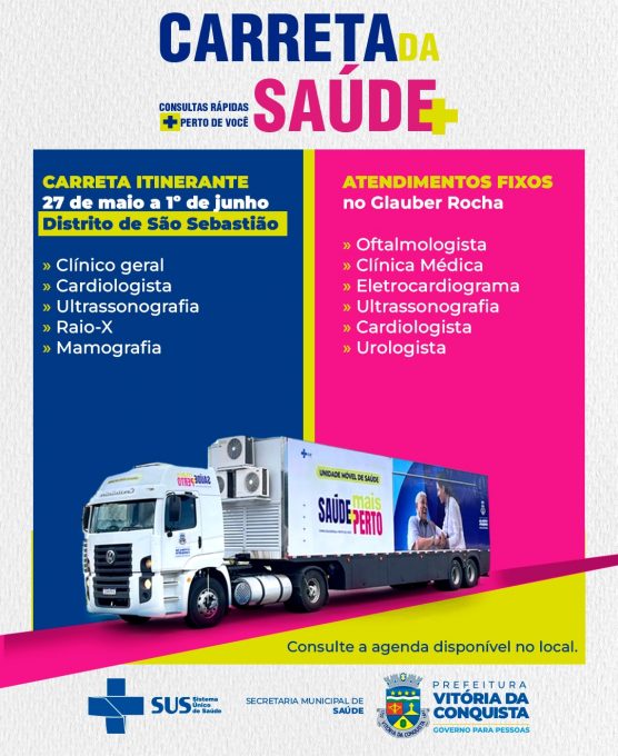 No domingo (26), a carreta segue em direção ao distrito de São Sebastião, onde prestará atendimento do dia 27 de maio a 1º de junho.