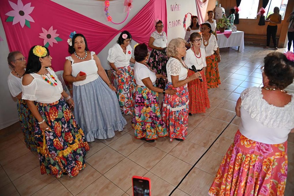 As mais de 70 idosas ainda se revezaram no auditório da unidade, realizando apresentações teatrais e musicais, dança, recital de poemas e sorteio de brindes. As homenagens foram encerradas com a participação da cantora Keila Suelen, que levou os presentes a dançar pelo salão.