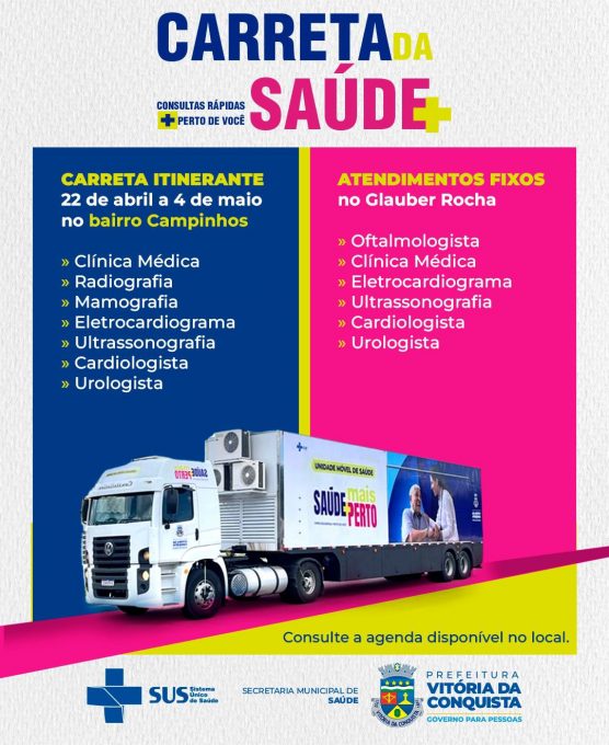 Além da carreta, o projeto Saúde Mais Perto também inclui os consultórios fixos montados no Glauber Rocha, desde o dia 7 de março, onde também estão acontecendo os atendimentos diariamente. Nesse local são disponibilizadas consultas com médico clínico, cardiologista, oftalmologista e urologista, bem como os exames de eletrocardiograma e ultrassonografia. Os pacientes estão sendo atendidos mediante encaminhamento das unidades de saúde e por demanda espontânea.
