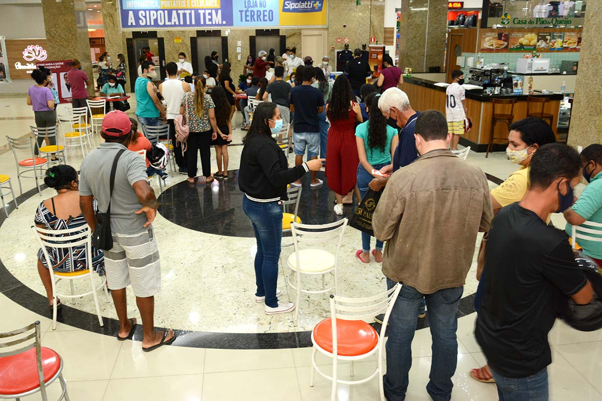 A vacinação nos shoppings será interrompida hoje, às 20h ou enquanto durar o estoque, e será retomada na terça-feira (28) para mais um período, encerrando na próxima quina (30).