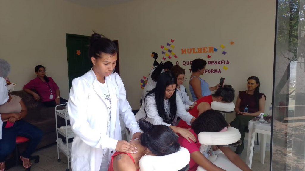 Ainda na programação do Março Mulher, a unidade de acolhimento institucional Acolhendo e Cuidando reuniu adolescentes e funcionárias do serviço, em uma atividade de promoção ao autocuidado e bem-estar social. Durante a ação, as participantes tiveram acesso a serviços de embelezamento, a exemplo de limpeza de pele e massagem, oferecidos em parceria com o curso de Estética e Cosmética da Faculdade Independente do Nordeste (Fainor). Também participaram de uma roda de conversa com o tema “Desmistificando as Violências Contra a Mulher: Conhecendo e Superando”, realizada em parceria com o Centro de Referência da Mulher – Albertina Vasconcelos (Crav).