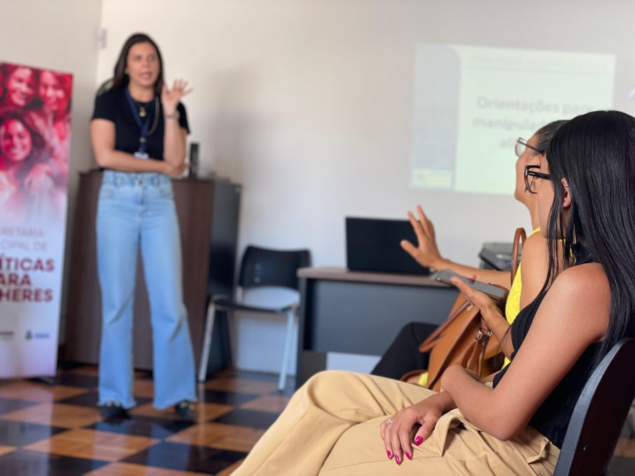 Na última quarta-feira (21/08), aconteceu, na sede da Secretaria Municipal de Política para Mulheres (SMPM), uma oficina de manuseio e higiene de alimentos, como parte da programação da campanha nacional Agosto Lilás. A atividade foi promovida pela SMPM, em parceria com a Vigilância Sanitária, e contou com a presença de mulheres empreendedoras do município.