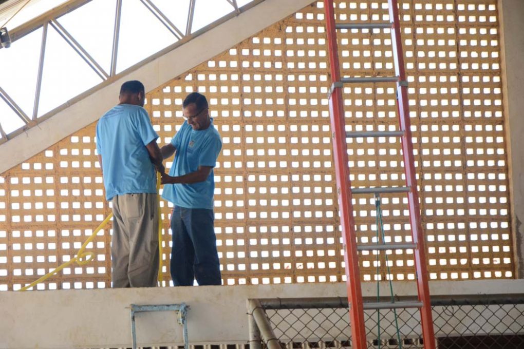 No lotemento Miro Cairo, também é realizada a revitalização da quadra da Escola Municipal Lisete Mármore. As obras já começaram na segunda passada. Lá, uma equipe formada por profissionais elétricos, hidráulicos, serralheiros, pedreiros e pintores trabalham para uma revitalização completa.