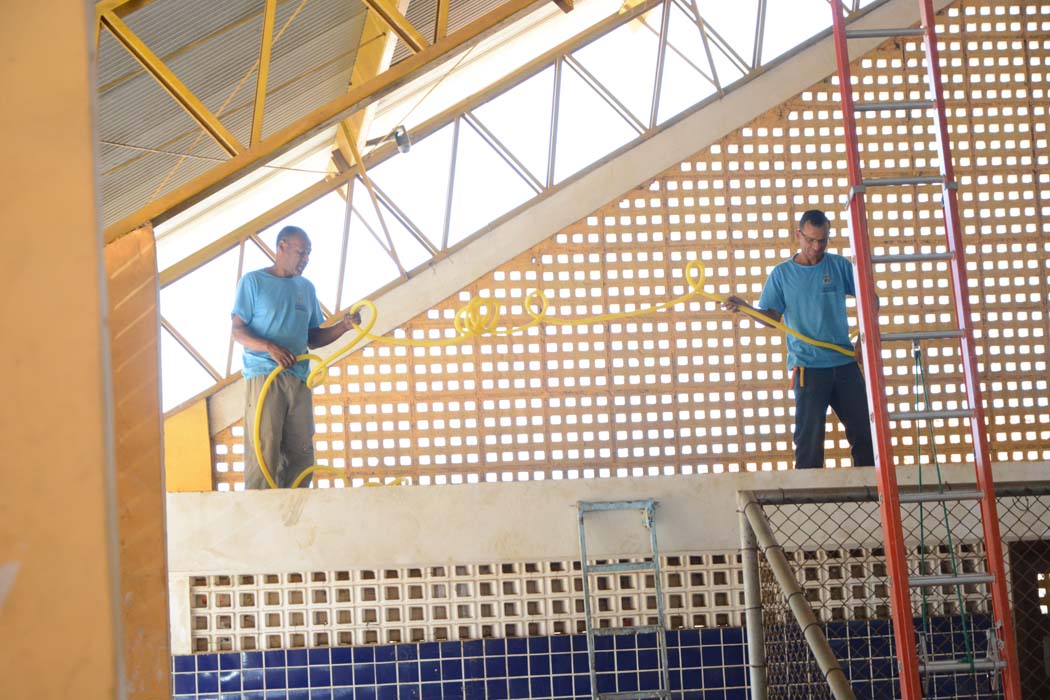 No lotemento Miro Cairo, também é realizada a revitalização da quadra da Escola Municipal Lisete Mármore. As obras já começaram na segunda passada. Lá, uma equipe formada por profissionais elétricos, hidráulicos, serralheiros, pedreiros e pintores trabalham para uma revitalização completa.