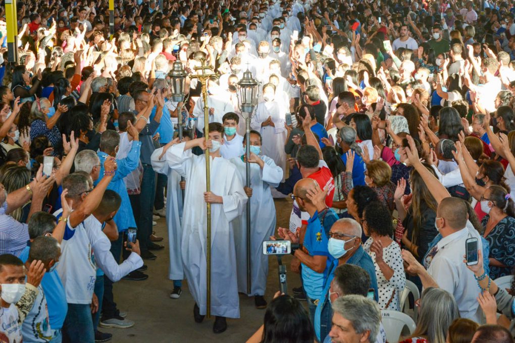 Fiéis católicos celebraram nesta segunda-feira (15), a padroeira de Vitória da Conquista, Nossa Senhora das Vitórias. Este ano, os festejos tiveram como tema “Nossa Senhora: modelo de comunhão, participação e missão”. Após dois anos de restrições por conta da pandemia da Covid-19, a celebração, totalmente aberta ao público, foi realizada no Parque de Exposições Teopompo de Almeida.