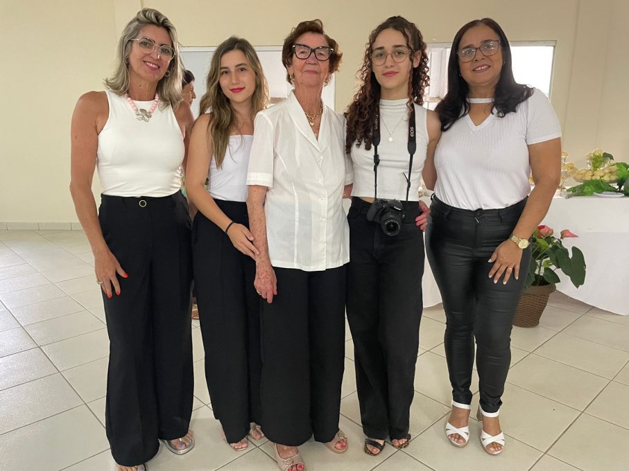 Mariana (a segunda da direita à esquerda) ao lado de parentes, em um encontro de gerações