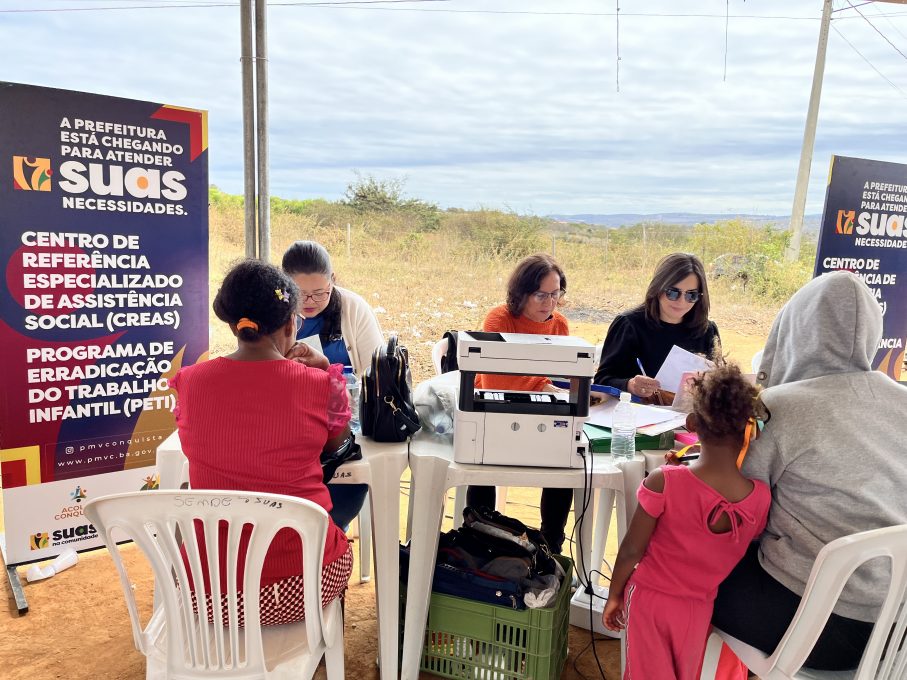 Durante a ação, realizada no campo de futebol da localidade, a população teve acesso descentralizado aos serviços do Sistema Único de Assistência Social (Suas), de Habitação de Interesse Social, Desenvolvimento Rural, Ouvidoria Municipal e políticas transversais, como Igualdade Racial e Política para Mulheres. Além disso, foram ofertados atendimentos da Defensoria Pública do Estado (DPE) e atividades culturais, como uma oficina de capoeira voltada ao público infantil, fortalecendo o vínculo comunitário e o acesso a direitos.