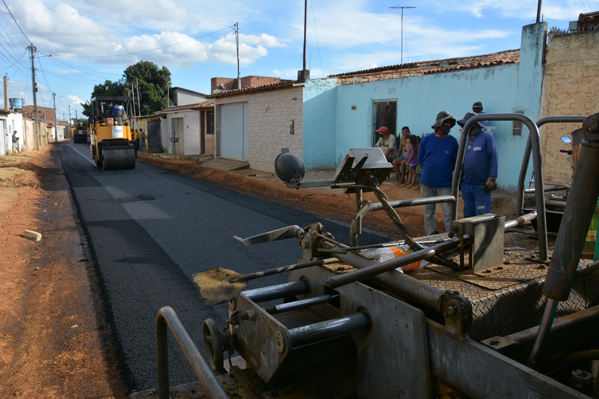 Nessa sexta, foi pavimentado o trecho 2 da rua Nova. Há 15 dias, o trecho 1 e as ruas C e G também receberam asfalto.