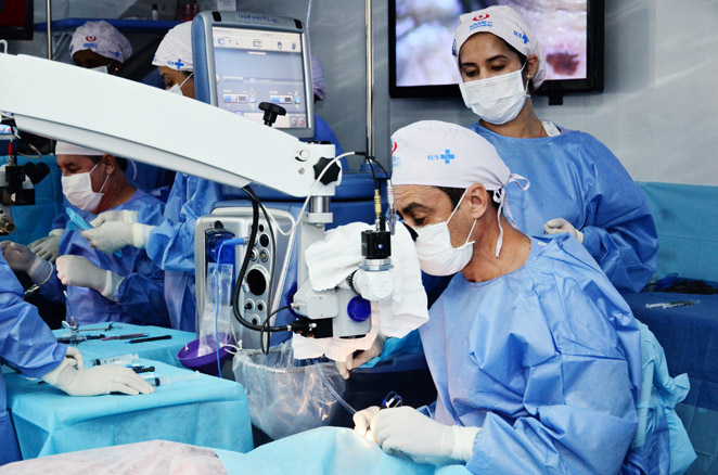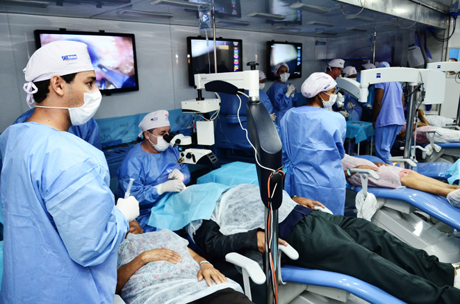 Desde o dia 26 de outubro, na Arena Miraflores, cedido gratuitamente pelo empresário Marcelo Flores – parceiro do evento -, usuários do Sistema Único de Saúde maiores de 60 anos e com problemas de catarata congênita receberam atendimento humanizado, desde a recepção até a cirurgia. Uma equipe de mais de 100 profissionais fizeram o acolhimento, a triagem, as consultas e as cirurgias.