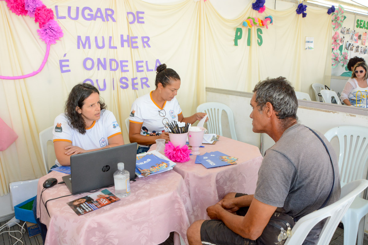 Com uma estrutura formada por 56 estandes, o Dia da Mulher, no Centro Cultural Glauber Rocha, está ofertando, desde a manhã desta sexta-feira (8), diversos serviços voltados ao público, especialmente, feminino. E as mulheres estão curtindo esse momento, visitando os estandes para saber o que cada um está oferecendo.