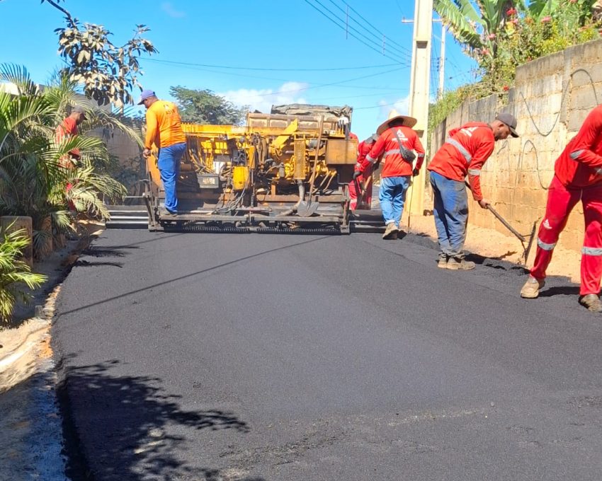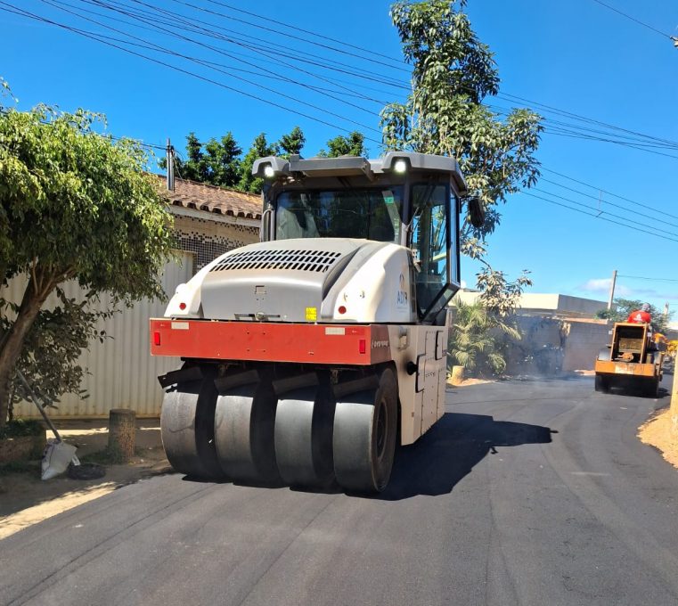 A Prefeitura de Vitória da Conquista prossegue com a obra de pavimentação asfáltica na Rua do Corredor, no povoado da Estiva, nesta terça-feira (09).