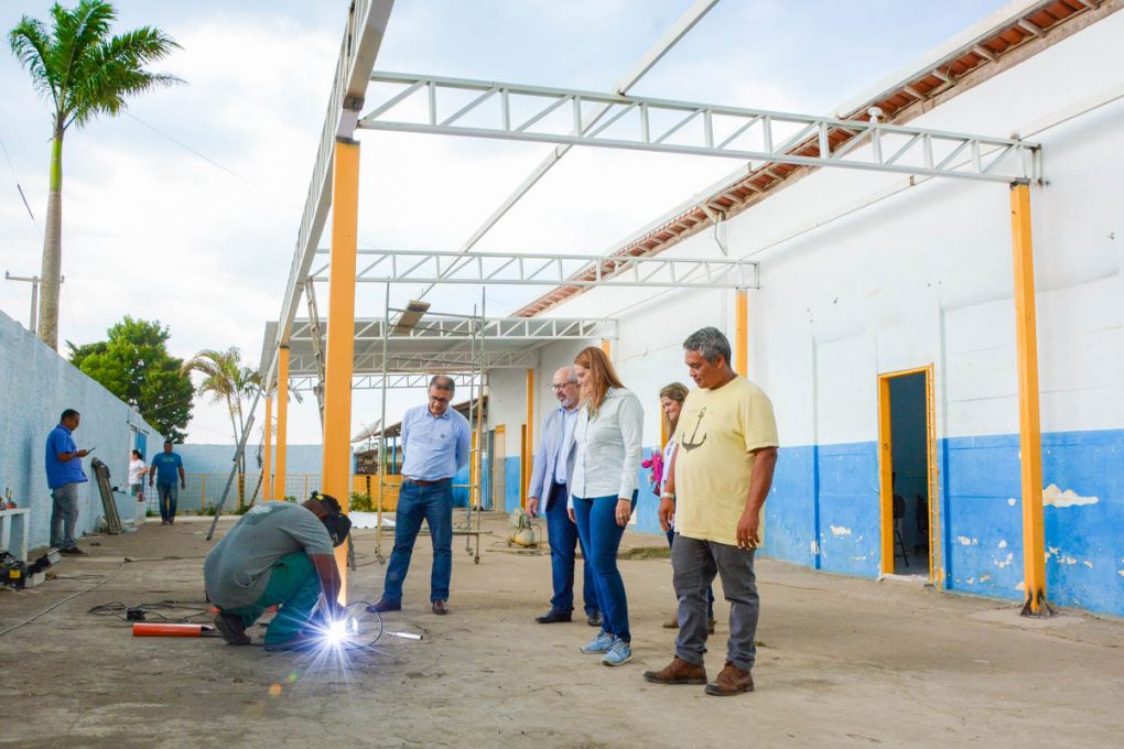 Cabeceira do Jiboia – A segunda visita foi à Escola Municipal Domingos de Oliveira, onde a prefeita vistoriou o andamento da reforma geral da unidade escolar que, neste momento, está em fase de instalação da cobertura no pátio e revestimentos nas salas de aula. Também já foi construída uma sala para os professores.