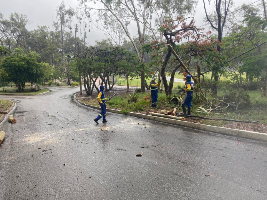 No Vila América, na Rua José de Sá Martins, em frente a um ferro velho, metade de uma árvore caiu. A equipe da Secretaria Municipal de Meio Ambiente foi acionada. Também houve queda de galhos no Estádio Lomanto Júnior e na Praça da Avenida São Geraldo, onde a equipe da Sesep já está atuando.