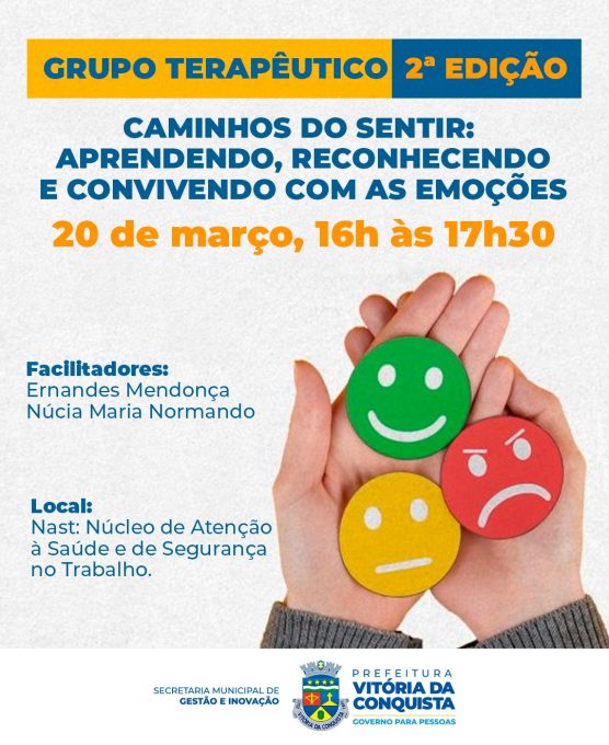 Com um total de 30 vagas gratuitas destinadas exclusivamente a servidores municipais, os encontros acontecem sempre às quartas-feiras, das 16h às 17h30. O grupo terapêutico terá início nesta quarta-feira (20), às 16h, na sede do Nast, localizada na Rua dos Fonsecas, Nº 130, Centro.