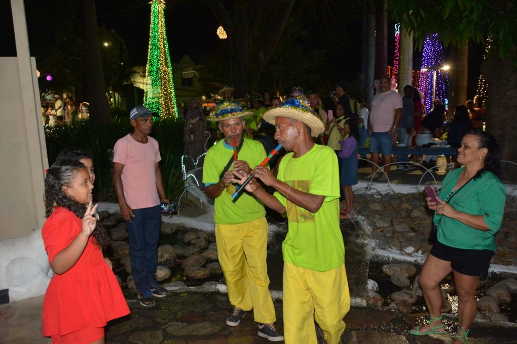 Já na praça Tancredo Neves, a animação ficou por conta do Terno de Reis Estrela Guia, que veio do Loteamento Jardim Sudoeste com um repertório tocado há mais de 40 anos pelos pais de Marcos Florentino, um dos lideres do grupo. “Eu aprendi com meu pai, que aprendeu com meu avô e agora estou ensinando minha filha”,disse Marcos ao lado de sua filha Suelem Oliveira, de 14 anos. “Para mim é uma emoção poder tocar ao lado de meu pai e continuar com a nossa tradição”, declarou Suelem.