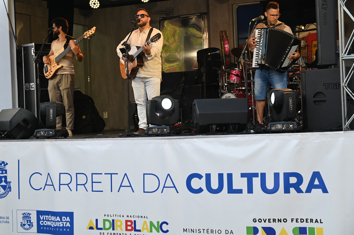 O músico Peu Passos subiu ao palco da Praça Nove de Novembro trazendo um repertório que uniu a técnica instrumental à força da música regional. Natural de Boquira, mas conquistense de coração, Peu apresentou um show conceitual focado nas harmonias do Clube da Esquina e na narrativa nordestina de nomes como Vital Farias.