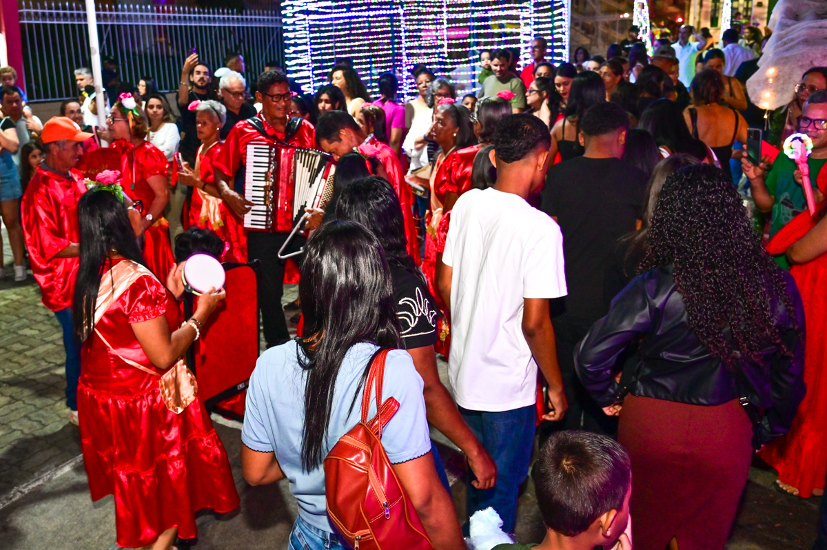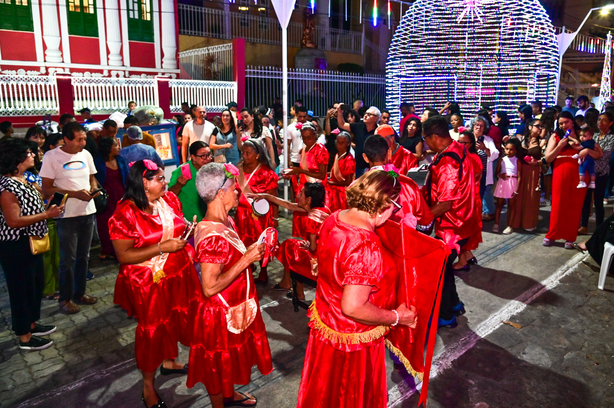 A noite desta sexta-feira (19) reafirmou o espírito democrático e multicultural do Natal Conquista de Luz. Enquanto a Praça Nove de Novembro foi embalada pela sofisticação da música brasileira e instrumental, a Praça Tancredo Neves se transformou em palco para a ancestralidade e a fé, com a apresentação de um terno de reis composto exclusivamente por mulheres.
