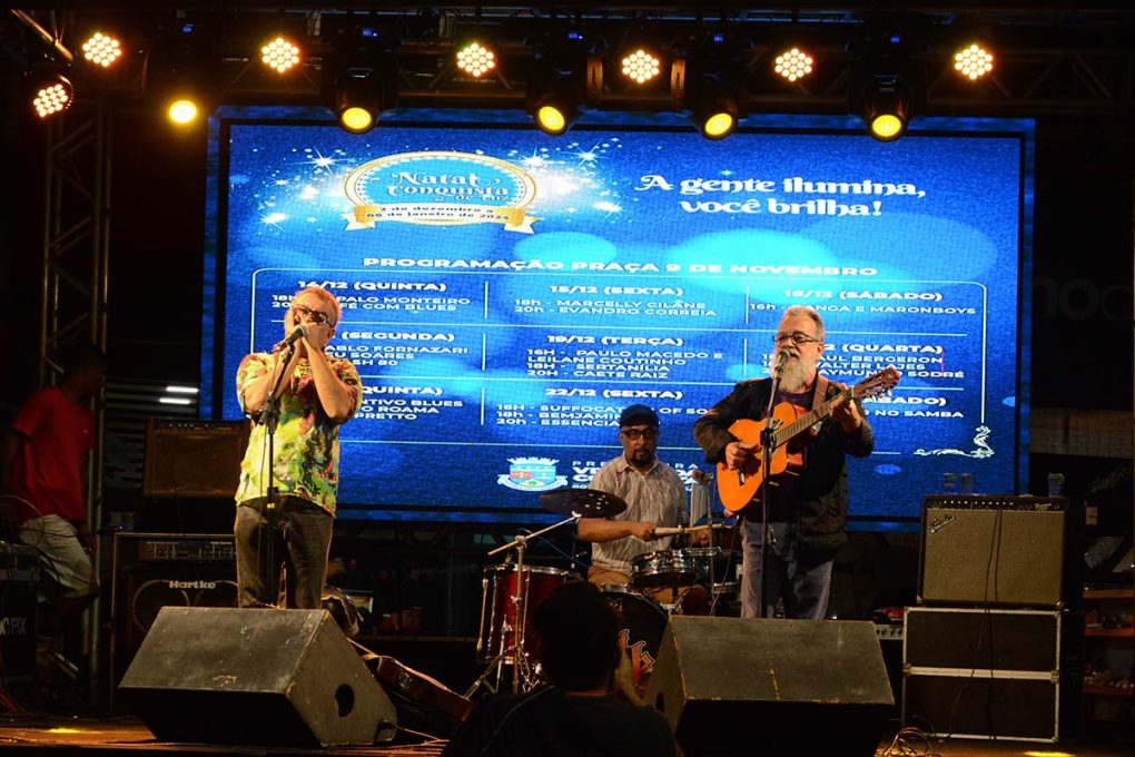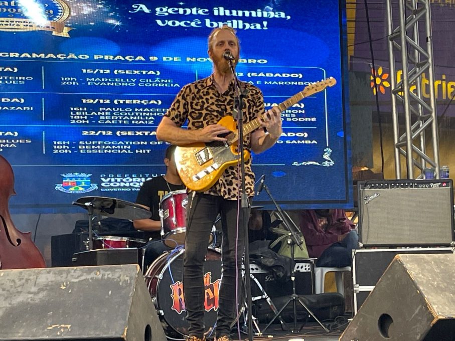 O primeiro a se apresentar, ainda durante a tarde, foi Paul Bergeron. Nascido na Califórnia (EUA) e radicado em Vitória da Conquista há cerca de quatro anos, ele representa o tradicional rock and roll, com o autêntico sotaque americano. Paul entoou clássicos dos anos 50 e 60 que embalaram o público. “Primeiro Natal que toco aqui e vejo que as pessoas gostaram do som. Eu também gostei e estou feliz com o resultado”, salientou Paul.