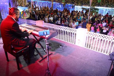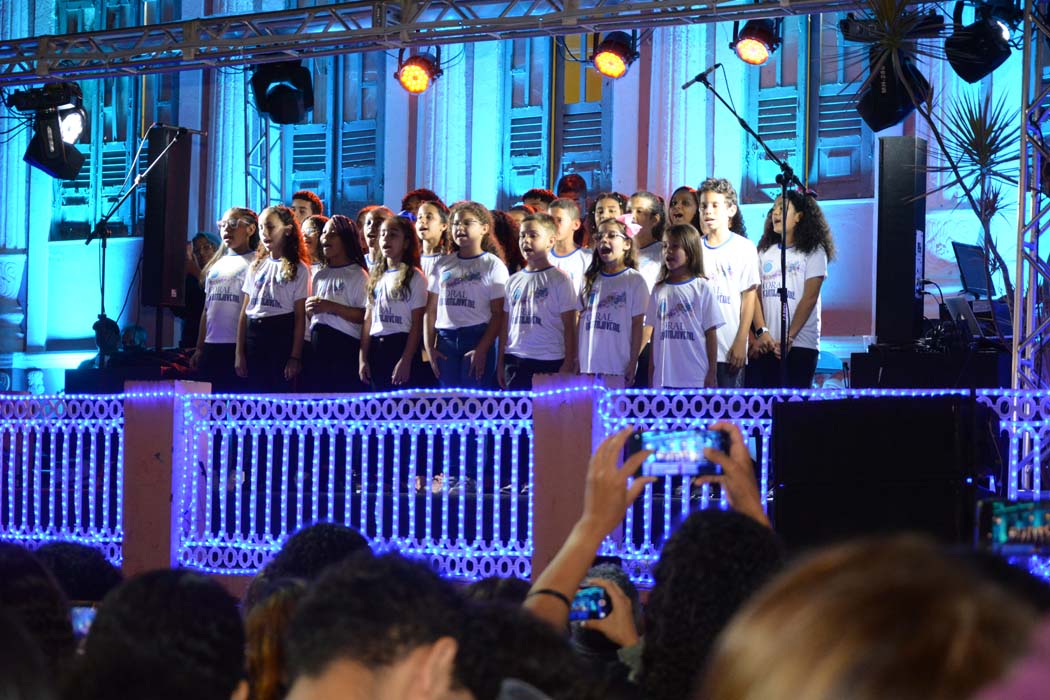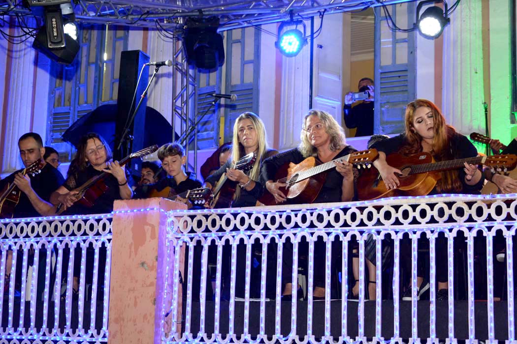 O colorido das luzes aliado à melodia, harmonia e ao ritmo do repertório musical apresentado pelos alunos e professores do Conservatório Municipal de Música deram um brilho especial à Praça Tancredo Neves na abertura da programação cultural do Natal Conquista de Luz, na noite desta quarta-feira (14). Mesmo com a previsão de chuva, que começou a cair no final das apresentações, o público prestigiou o Recital que contou com apresentações de violão clássico, piano, teclado, flauta, sax, viola caipira e violão popular, além de canto coral infantil e adulto, que trouxeram muitas canções natalinas e o resultado de um ano de estudo da teoria e prática musical.