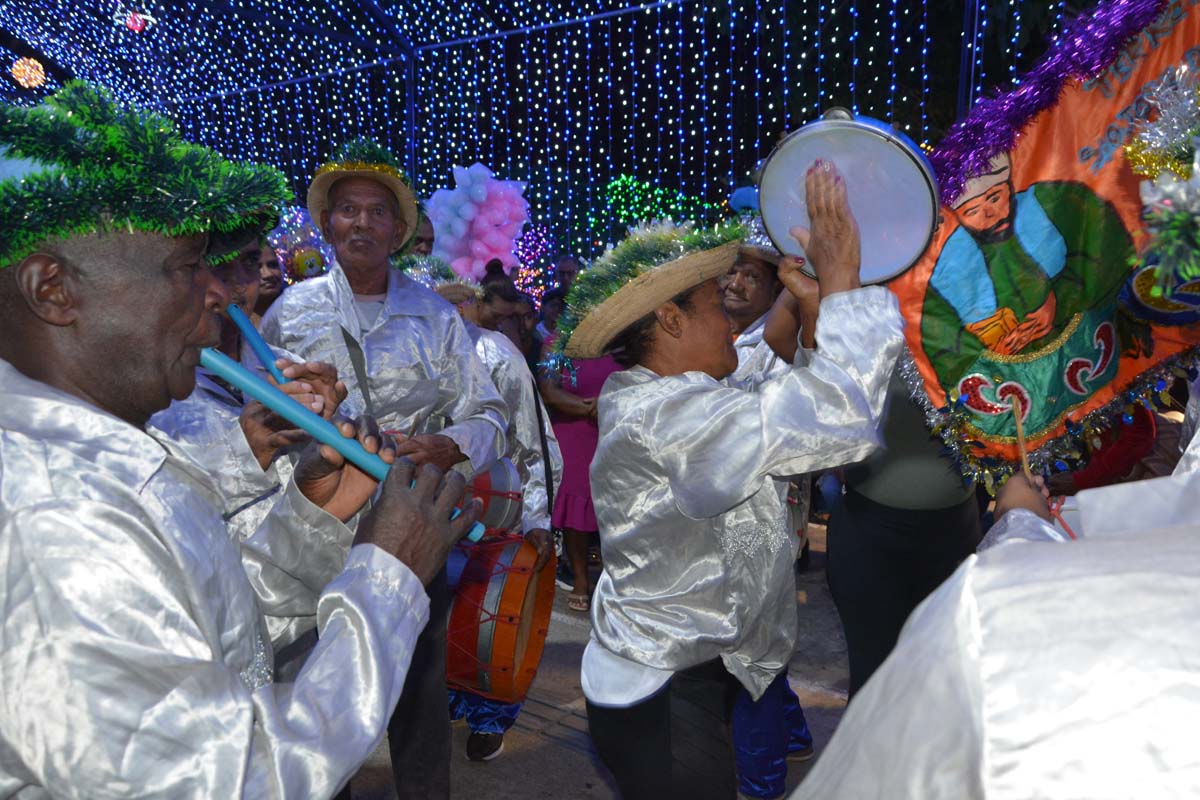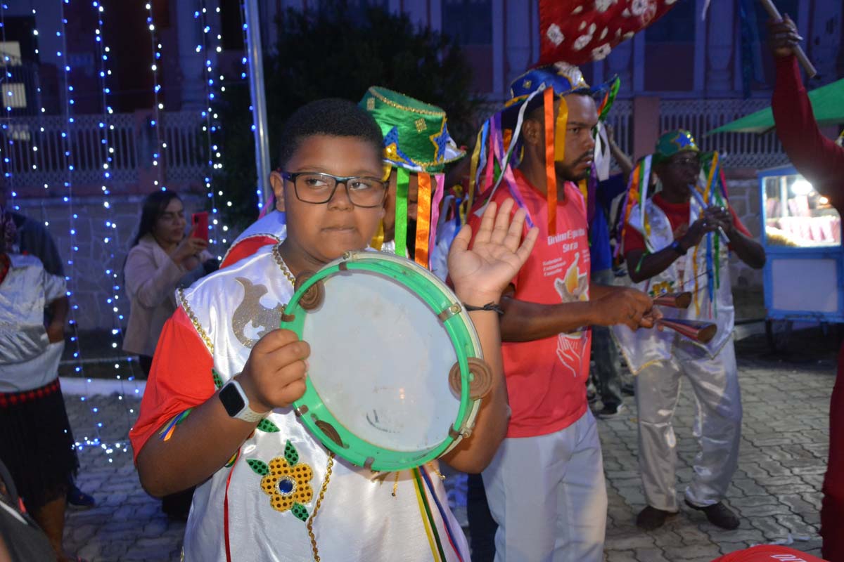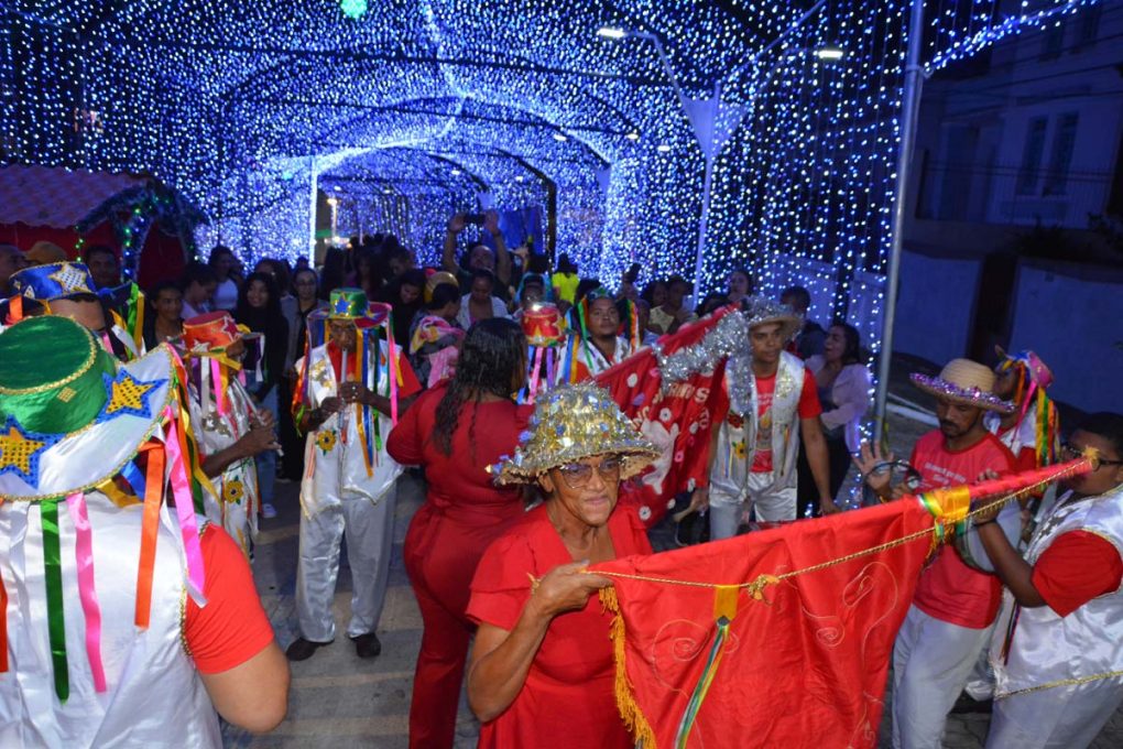 Enquanto o público curtia o som na praça Nove de Novembro, muitas pessoas prestigiavam as apresentações dos ternos de reis na praça Tancredo Neves. Com alegria, colorido e fé que cativam a todos, os dois ternos de reis do povoado do Baixão louvaram o nascimento do menino Jesus.