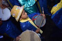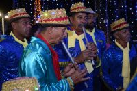 O colorido vibrante das roupas, os versos populares entoados e o som produzido pelos pífanos, pandeiros, tambores e gaitas anunciavam, na noite deste sábado (6), o início do tradicional Encontro de Ternos de Reis, no Natal Conquista de Luz.