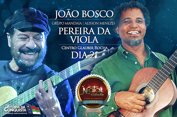 Cantador, violeiro e compositor mineiro, Pereira da Viola é um dos artistas convidados deste domingo, 21, terceira noite do Natal da Cidade. A programação, promovida pela Prefeitura de Vitória da Conquista, conta ainda com o show de um dos maiores compositores da Música Popular Brasileira (MPB), João Bosco, que em mais uma edição do evento encantará o público que comparecer ao Centro Glauber Rocha – Educação e Cultura.
